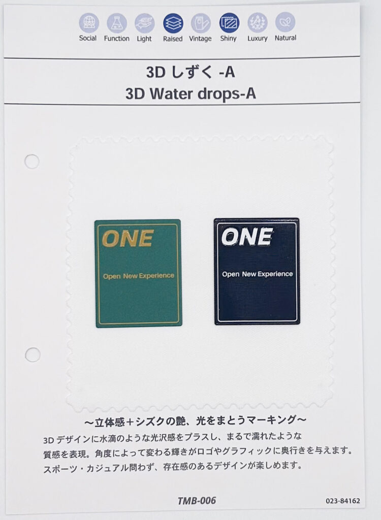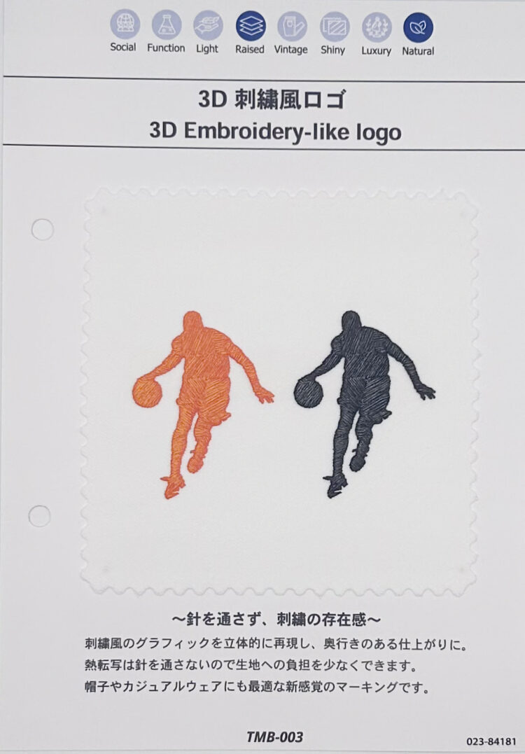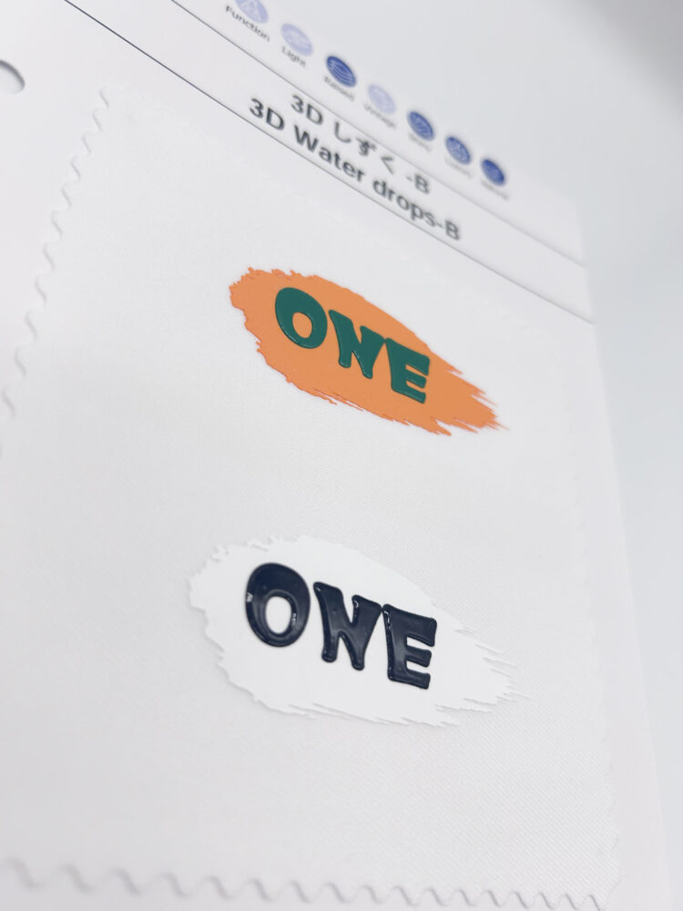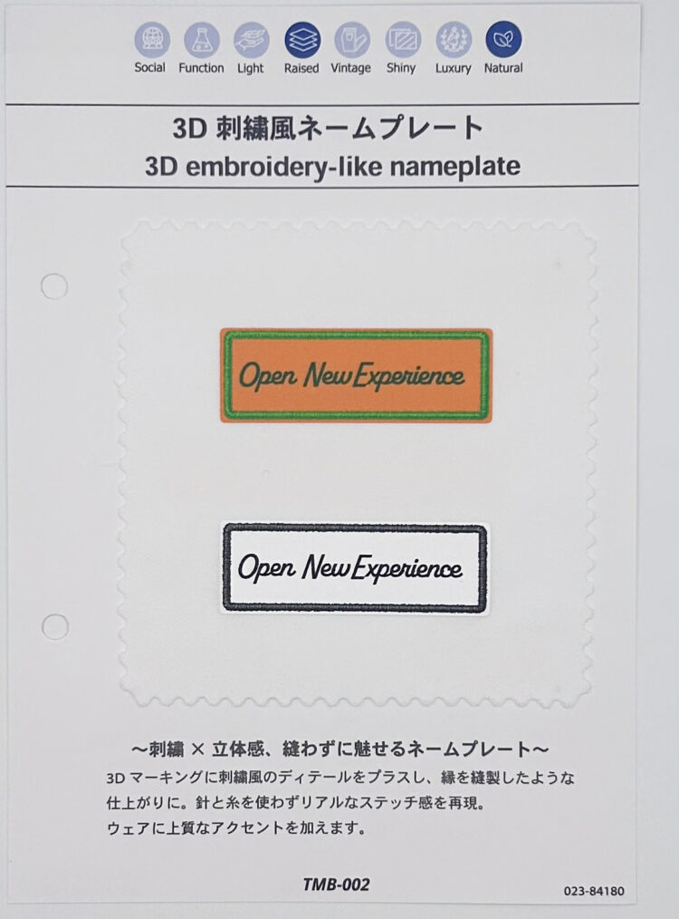 立体感と刺繍風印刷の繊細さを掛け合わせたマーキング。