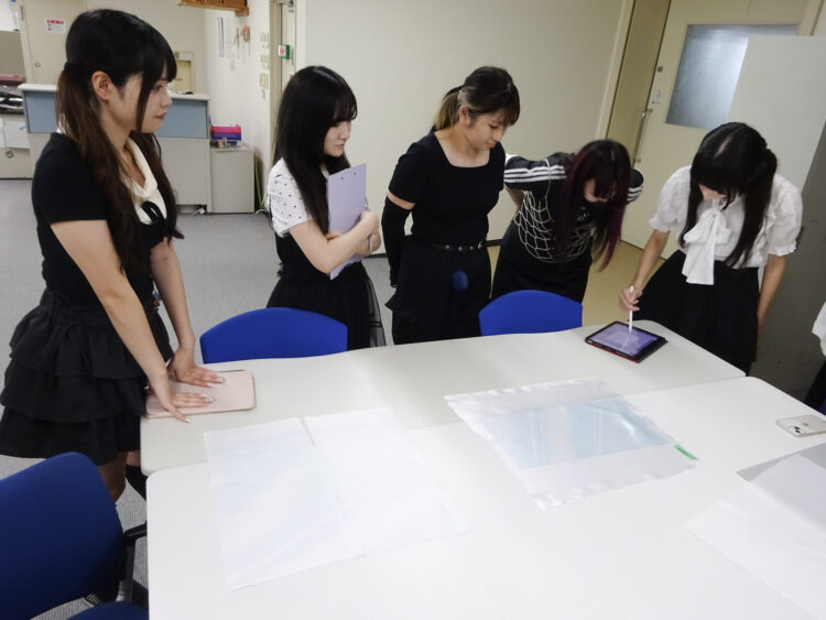 来年開催予定のファッションショーに向け、実際の材料やプリント柄をその場で検討し、昇華転写プリントの実演を交えながら具体化していく—そんな“現場起点の学び”に挑戦しました。