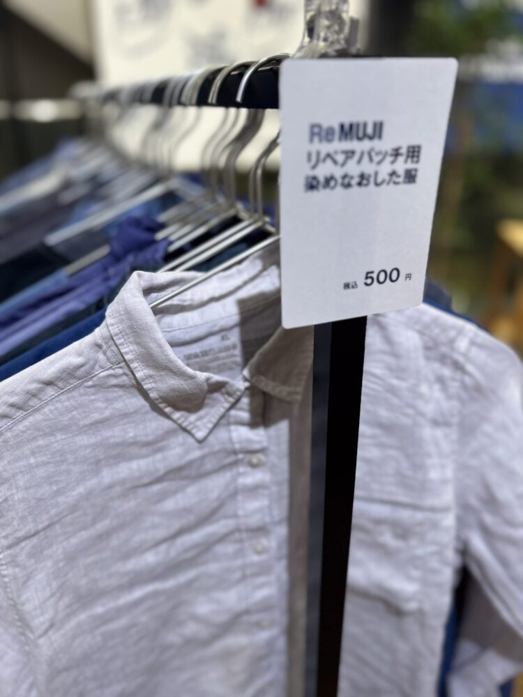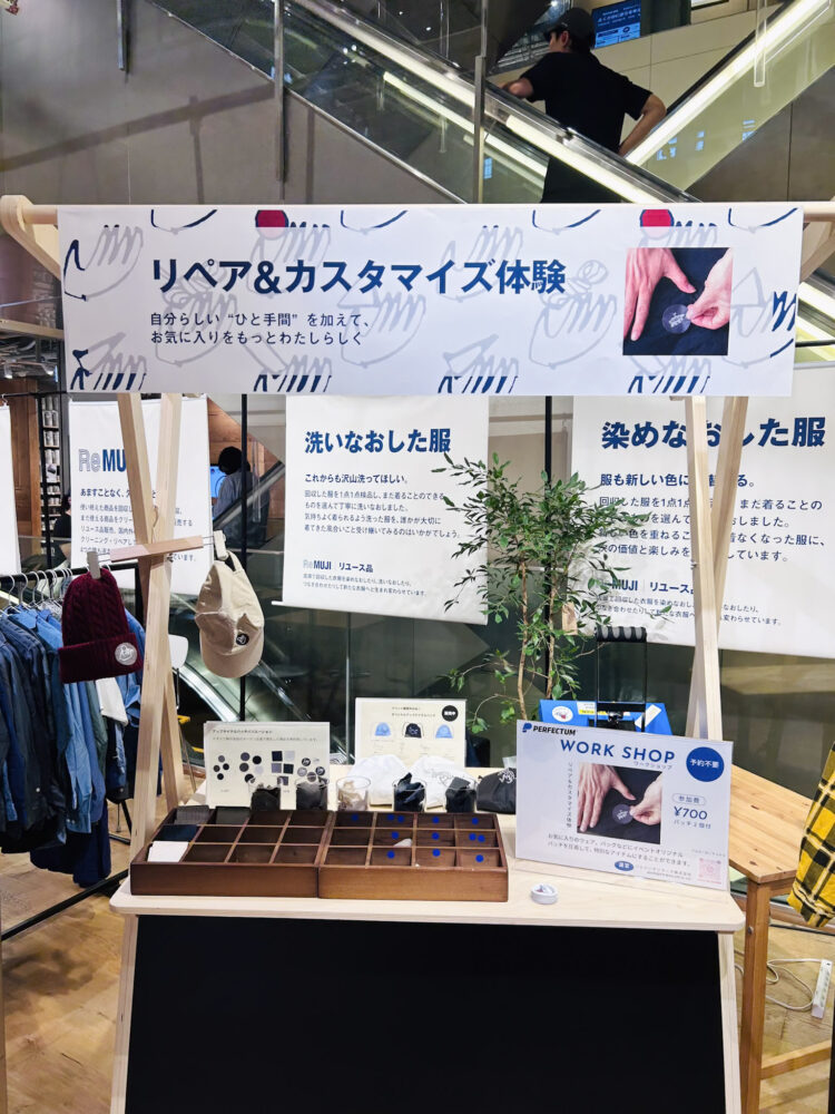 また、今回特別にReMUJIの訳ありの染め直し品を再活用することで、廃棄を減らしながら“直して使う”価値を伝える、非常にエコな取り組みとなりました。