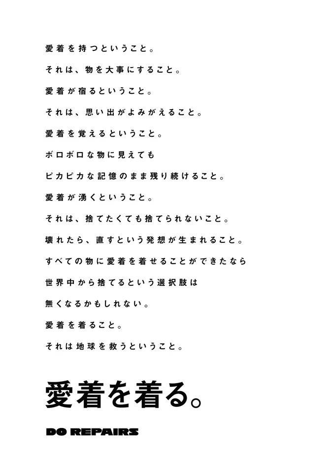 ファッションの街から“リペア文化”を発信するこの取り組みの中で、今回新たに掲げられた言葉が「愛着を着る。」。
