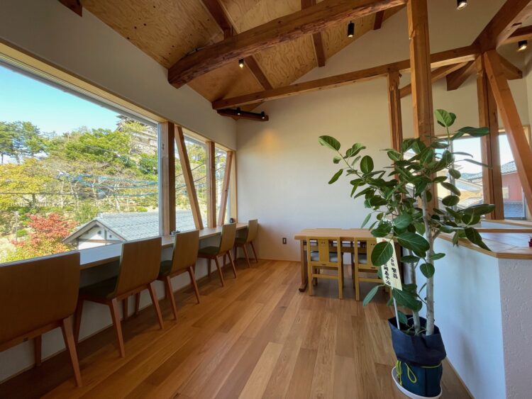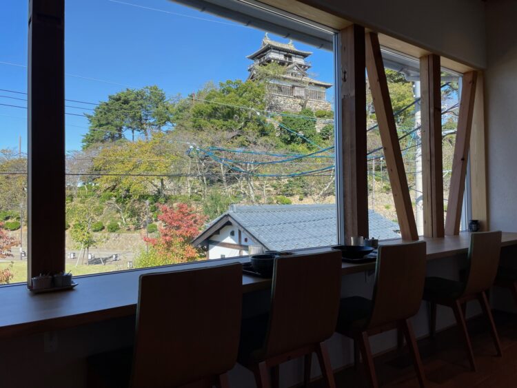 プレオープンにおじゃましたのですが、今回は2階席に案内してもらい、大きなガラス越しに丸岡城を眺めながら、思わず「福井すごっ…!」と感動してしまいました。